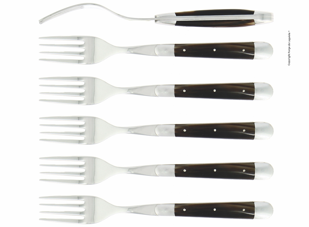 Sechs Gabeln, Griff aus dunklem Horn, poliert, Tradition - Forge de Laguiole