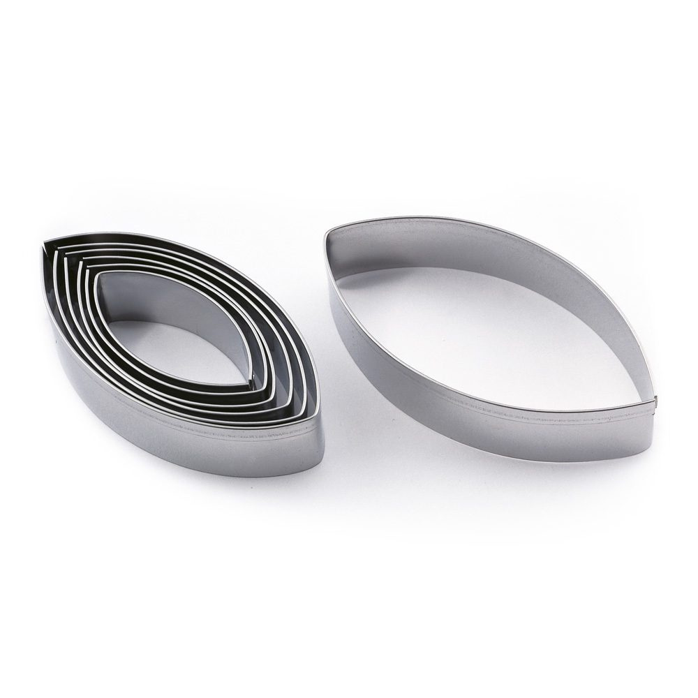 Ein siebenteiliges Ausstecherset, mit dem man Kuchen, Ravioli, Zuckerguss, Lebkuchen oder alles andere in schöne Bögen ausstechen kann. Perfekt für alle, die Kuchen backen wollen, die wie ein Boot, ein Auge, ein Leinsamen (nicht ganz, aber fast) oder etwas anderes Festliches aussehen. Hergestellt aus rostfreiem Stahl. Alle sieben Teile sind unterschiedlich groß, das größte 100x50mm und das kleinste 55x25mm.