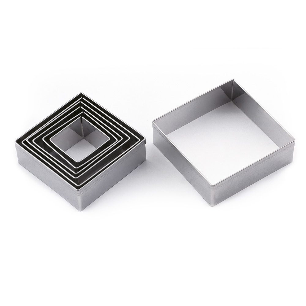 Ein siebenteiliges Ausstecherset, mit dem man Kuchen, Ravioli, Zuckerguss, Lebkuchen oder andere Dinge in schöne Quadrate ausstechen kann. Perfekt für alle, die Kuchen backen wollen, die aussehen wie ein Fenster, Augen, die zu viel ferngesehen haben, die Rauchwand in der Schule oder etwas anderes Festliches. Hergestellt aus rostfreiem Stahl. Alle sieben Teile sind unterschiedlich groß, das größte 65x65mm und das kleinste 27x27mm.