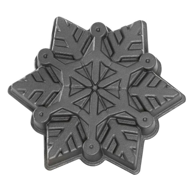 Eine Nordic Ware Backform für die Herstellung eines schneeflockenförmigen Kuchens.