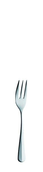 Schlanke und elegante, dreizinkige Kuchengabel aus 18/10 Stahl von German Solex. Verkauft in Sätzen von 12.
