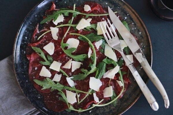 Das Design ist ebenso kultig wie praktisch: Das leicht gebogene Messer liegt perfekt in der Hand und schneidet mit chirurgischer Präzision, während die Gabel denselben organischen Linien folgt. Jedes Set ist ein Unikat dank des natürlichen Hornmaterials, das in Farbe und Textur variiert.
