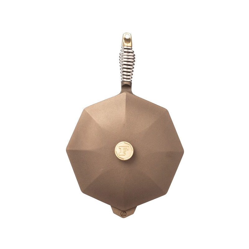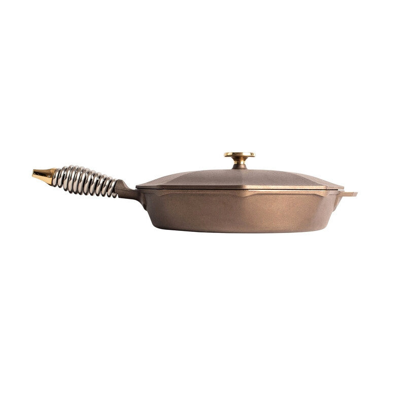 Gusseiserne Bratpfanne von American Finex, dem Geschwisterunternehmen von Lodge. Diese Pfannen sind von absoluter Spitzenqualität und setzen neue Maßstäbe für gusseiserne Pfannen. Mit ihrer Dicke, ihrem Design, ihrer Verarbeitung, ihrem Griff usw. sind sie unvergesslich, wenn man mit ihnen arbeitet, aber wirklich unvergesslich vom ersten Anblick an. Der spezielle Griff mit der Edelstahlspirale sorgt dafür, dass der Griff nicht heiß wird und schnell an Temperatur verliert, wenn Sie die Pfanne im Ofen hatten. Die Pfannen werden werkseitig mit Leinöl geschmiert, was die Haltbarkeit gewährleistet und auch zur besonderen Bronzefarbe beiträgt. Da sich die Amerikaner hartnäckig weigern, das gleiche Maßsystem wie der Rest der Welt zu verwenden, gibt es sie in etwas verrückten Formaten.