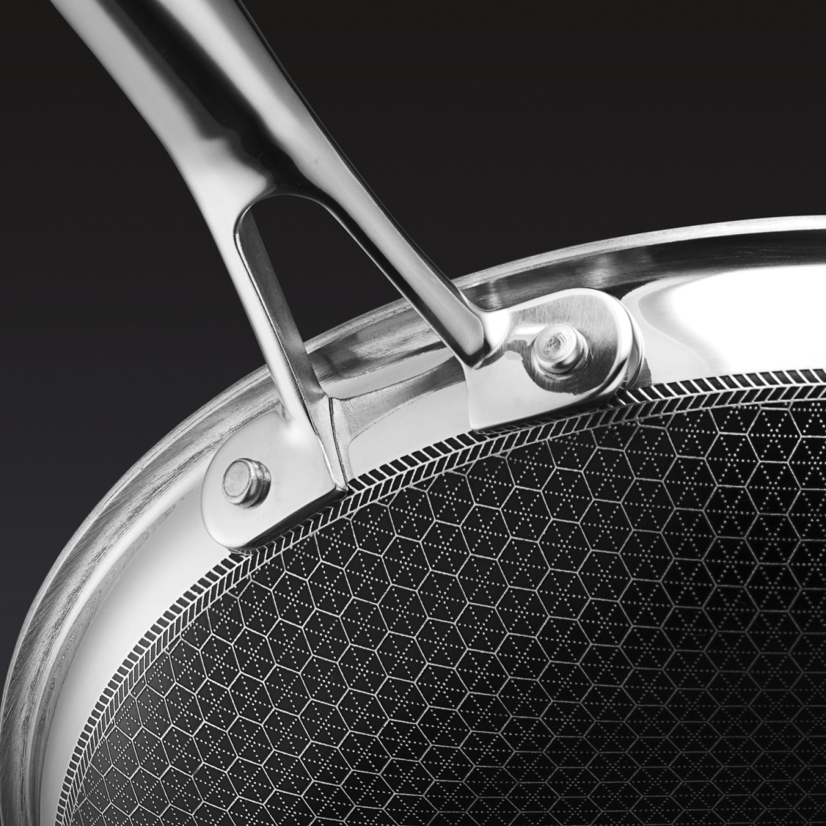 - Lasergravierte Oberfläche mit Sechseckmuster - kombiniert Bratfläche, Antihaft und Kratzfestigkeit