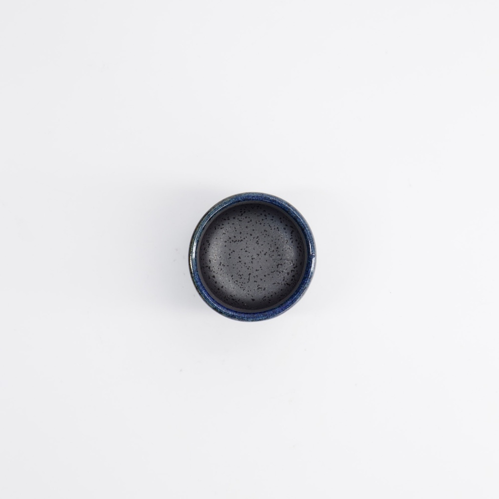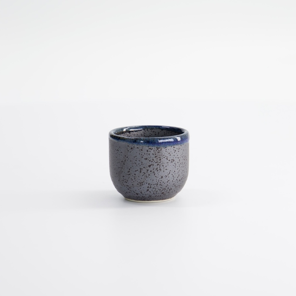 Dieses Modell ist aus Keramik mit einer tiefblauen Glasur gefertigt, die zum Fuß hin in eine dunkelgraue und schwarz gesprenkelte Oberfläche übergeht. Der Farbton verändert sich wie stilles Wasser in der Dämmerung, wobei jeder Winkel das Licht anders reflektiert. Die Farbe ist nicht nur dekorativ, sondern hat auch eine praktische Funktion: Die blaue Glasur wird traditionell verwendet, um Sake mit klarem, fast silbrig-weißem Glanz hervorzuheben - wie reinen Junmai oder leicht gekühlten Ginjo.