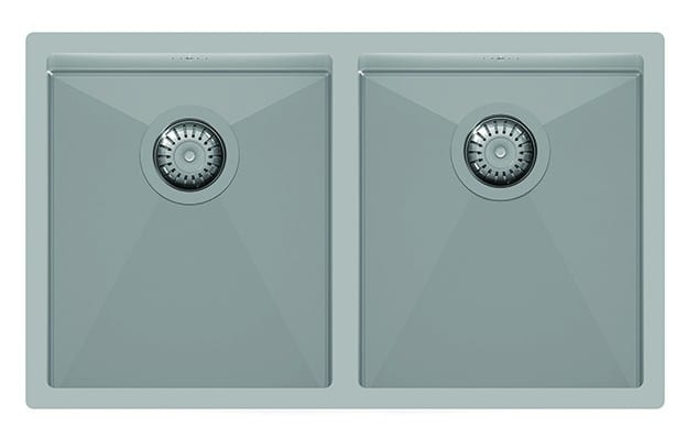 Edelstahl-Doppelspüle 760 x 450 mm für den versenkten Einbau in die Arbeitsplatte.