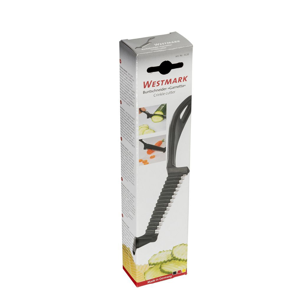 Mit dem praktischen Cutter können Sie Gemüse, Obst oder Käse schnell einen dekorativen Wellenschnitt verpassen. Dank der scharfen Edelstahlklinge und den zwei Griffen ist die Handhabung auch bei härterem Gemüse besonders einfach und sicher. Zaubern Sie gesunde Dekorationen für Buffets oder selbstgemachte Gemüsechips als Fingerfood für Ihre Party.