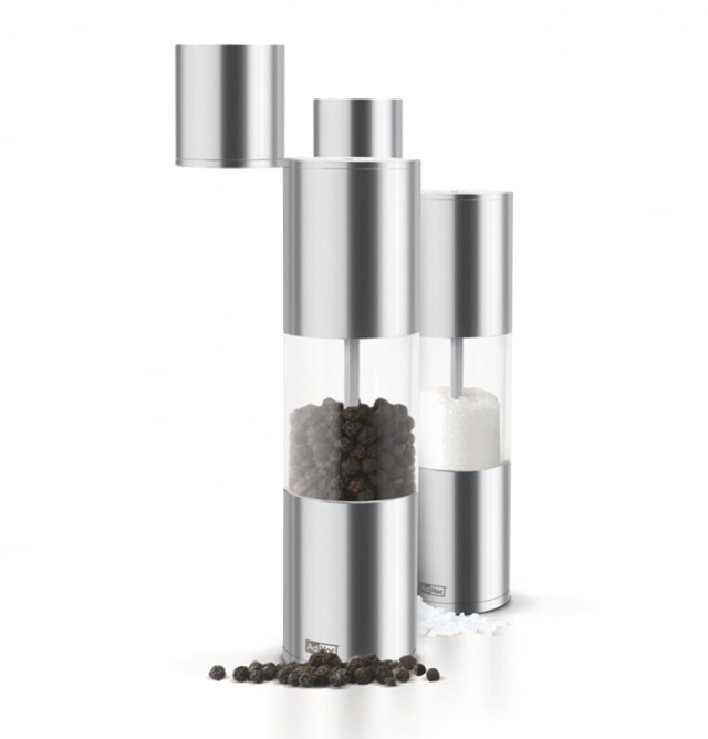 Manuelle Gewürzmühle mit Keramikmahlwerk. Geeignet für Salz, Pfeffer oder andere Gewürze. Abmessungen: 23 cm hoch / Ø 5 cm