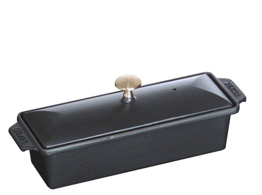Hochwertige Terrinenform aus Gusseisen von der französischen Firma Staub. Die gusseisernen Produkte von Staub werden aus den besten Materialien hergestellt und werden seit langem von Spitzenrestaurants auf der ganzen Welt verwendet.