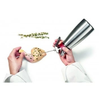 Dies sind Injektionsnadeln von iSi und ihre Siphons. Sie sind aus 100% rostfreiem Stahl 18/10 hergestellt und eignen sich zum Füllen von Gebäck oder Lebensmitteln, zum Einspritzen von Brühe und Aromen in Fleisch und Geflügel und für saubere, präzise Präsentationen.