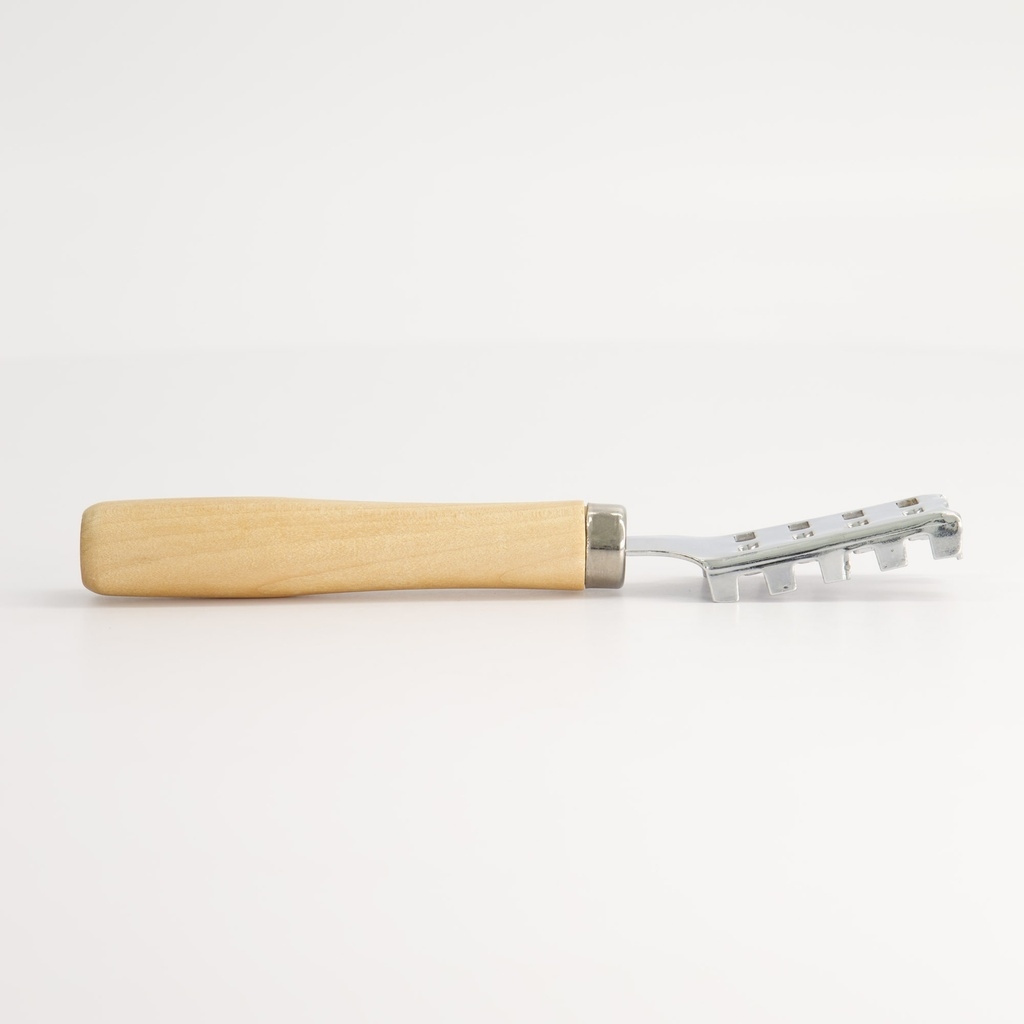 Das Entschuppen von Fisch ist selten der schönste Teil der Küche, aber das richtige Werkzeug macht den Unterschied. Der Fischentschupper ist einfach, schwer für seine Größe und so gebaut, dass er die Schuppen schnell entfernt, ohne die Haut zu beschädigen. Die erhabenen Kanten am Kopf fangen die Schuppen auf und verhindern, dass sie abprallen, so dass die Arbeit deutlich weniger schmutzig ist.