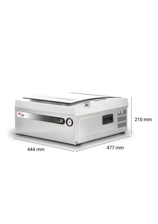 Orved EVOX 25 ist eine kompakte Kammervakuummaschine die in einer normalen Küchenschublade Platz findet und trotzdem professionelle Vakuumleistung bietet. Sie ist ideal für alle die zu Hause effizient vakuumieren möchten ohne die Arbeitsfläche zu blockieren. Das durchdachte Design ermöglicht die Montage in Standardschubladen gängiger Küchensysteme und bietet trotzdem genug Leistung für Fleisch, Flüssigkeiten, Gläser und flache Packungen.