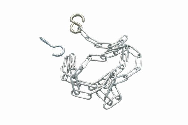 Hängekette aus verchromtem Stahl für Schneiders Ketchup-Spritzpistole, Art.-Nr. 152970. Die Kette ermöglicht es, das System von der Arbeitsfläche gelöst aufzuhängen, zum Beispiel an der Decke, an einem Rohr oder dem Wandhaken zur Montage, der als separater Artikel erhältlich ist.