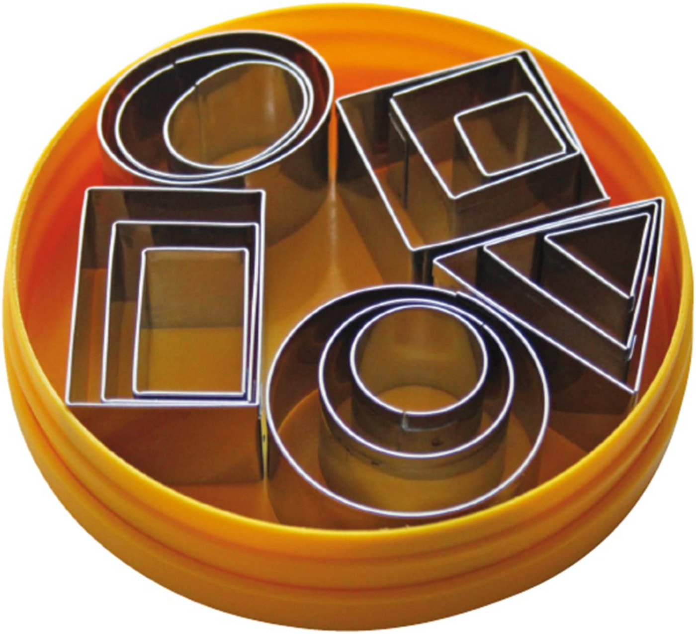 • Ausstecherset mit 15 geometrischen Formen aus Edelstahl, Höhe 20 mm, Materialstärke 0,3 mm. In der Konditorei werden die Formen verwendet, um Fondant, Marzipan und Zuckerteig in präzise geometrische Details auszustechen. Im Fine Dining sind sie ebenso zu Hause: Eine Terrine bei Raumtemperatur, ein gestocktes gepresstes Gemüseblatt, eine Aspikscheibe oder ein dünnes Carpaccio werden direkt auf dem Teller in exakte Geometrien geschnitten, ohne dass Freihandarbeit erforderlich ist. Die scharfe Kante aus 0,3 mm Stahl gibt einen sauberen Schnitt, der empfindliche Zubereitungen nicht zusammendrückt. Spülmaschinenfest und stapelbar.