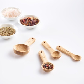 - praktisches Set aus Bambus - für trockene Gewürze - mit eingravierten Größen (je 1x 1 EL, 1 EL, 1/2 EL, 1/4 EL) - inkl. Lederband zum Zusammenhalten der Löffel in der Schublade