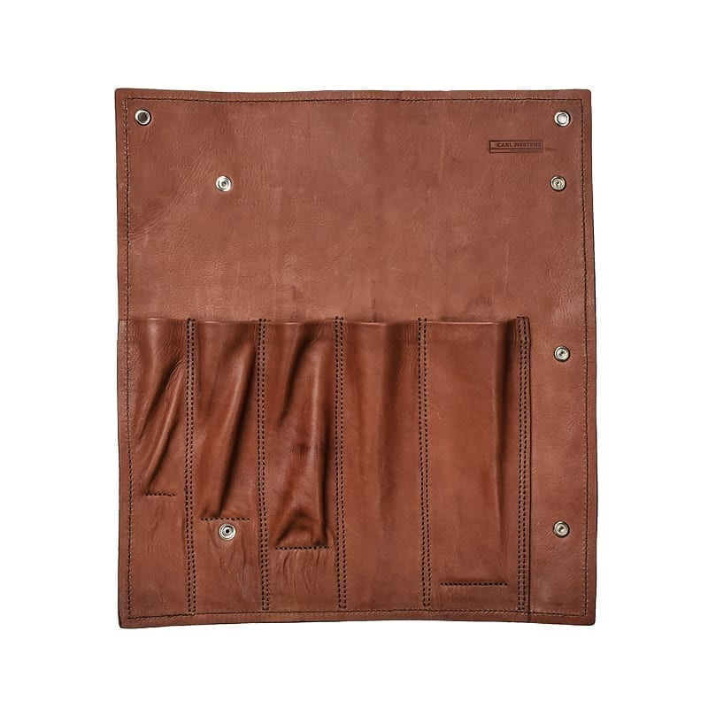 Handgefertigtes Etui aus grobem Leder für Messer und andere Utensilien. Das Etui lässt sich zusammenrollen und ist daher ideal für Reisen. Solide Qualität verspricht viele Jahre der Nutzung, wobei die Patina es nur noch schöner macht.