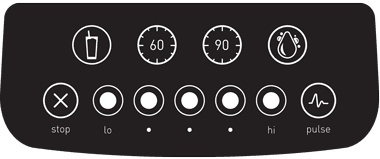 Auf dem Bedienfeld finden Sie klare Tasten für 5 Geschwindigkeiten plus Pulsfunktion, eine Stopptaste und vier voreingestellte Programme: eines für Smoothies, eines für die Reinigung und zwei Zeitfunktionen, die es Ihnen ermöglichen, den Mixer eine Zeit lang laufen zu lassen, während er sich um sich selbst kümmert.