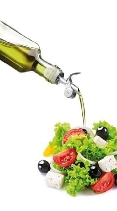 Dieser Ölspender ist selbst öffnend und selbst schließend. Durch Kippen der Flasche öffnet sich der Verschluss