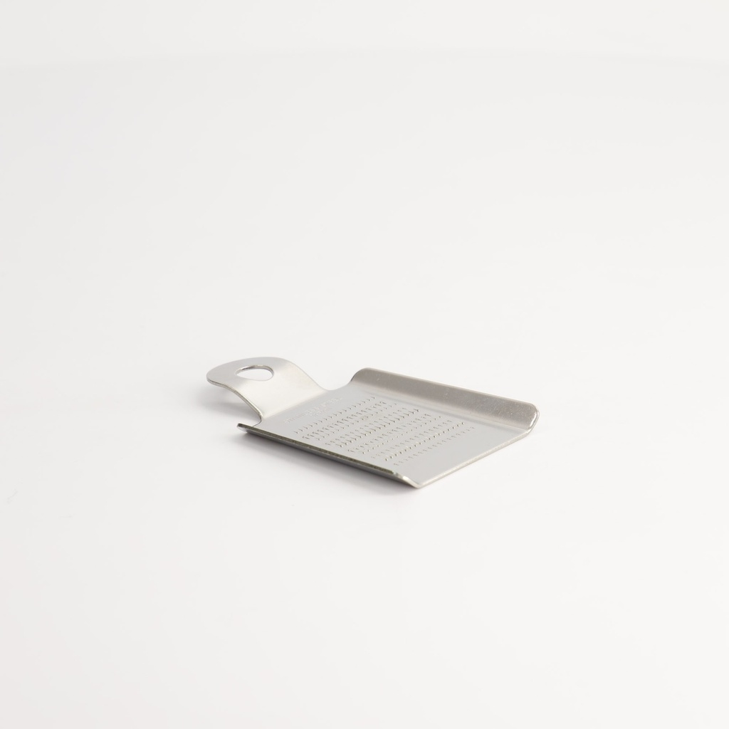 Die kleinen, rasiermesserscharfen Zähne sind direkt aus dem Stahl gestanzt und erzeugen ein Ergebnis, das feiner und gleichmäßiger ist als bei herkömmlichen westlichen Reiben. Der Ingwer, der Daikon, der Knoblauch oder der Apfel haben eine glatte, fast flauschige Textur anstelle der groben Flocken, die von gewöhnlichen gelochten Werkzeugen erzeugt werden. Für japanische Köche ist sie keine Spielerei, sondern Teil des Prozesses.