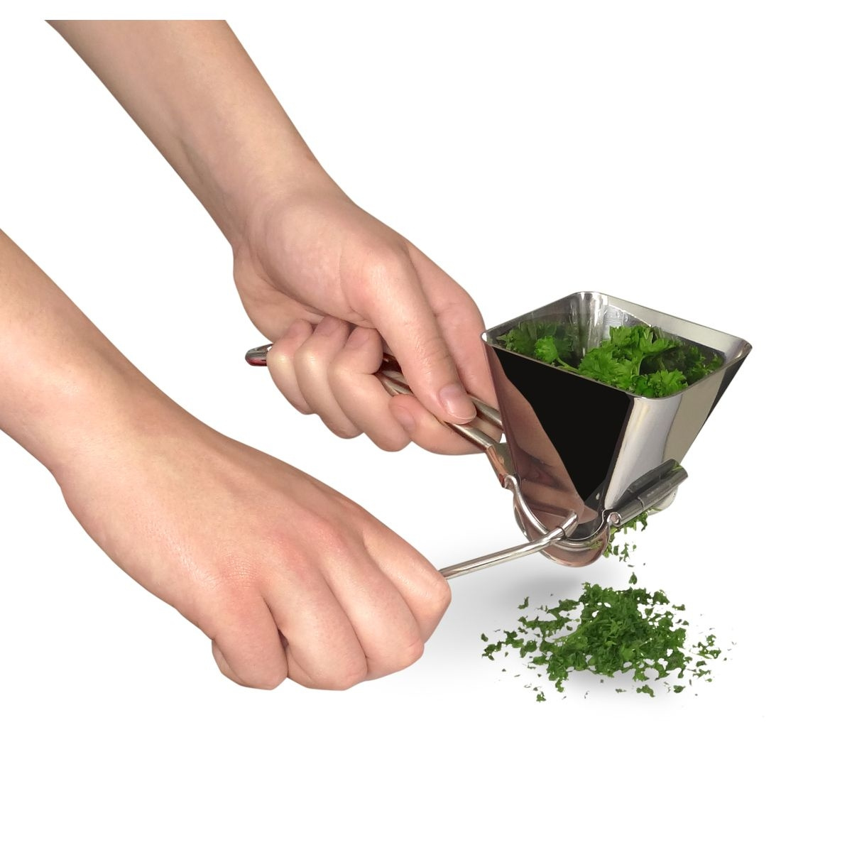 • Handliche Petersilienmühle zum einfachen Zerkleinern verschiedener Kräuter. In den Trichter stecken und kurbeln, um schnell und einfach Chimichurri, Marinaden, Saucen, Toppings und viele andere leckere Sachen zu machen. Hergestellt aus rostfreiem Stahl und spülmaschinenfest. 21 x 10 x 8 cm.