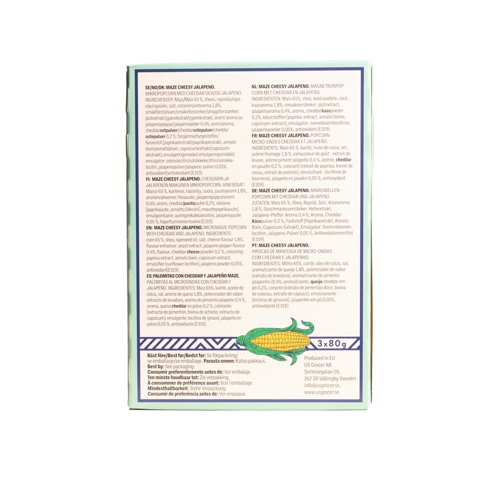 • Maze Popcorn ist der perfekte Snack — knusprig, aromatisch und bereit für Filmabende, Partys oder den Alltag. Ob Sie sich für eine würzige Jalapeño-Variante, einen klassischen Buttergeschmack, eine reichhaltige Double-Butter-Option oder einen kräftigen Cheddar-Käsegeschmack entscheiden, Maze Popcorn bietet eine ausgewogene Kombination aus Salz, intensivem Aroma und Knusprigkeit.
