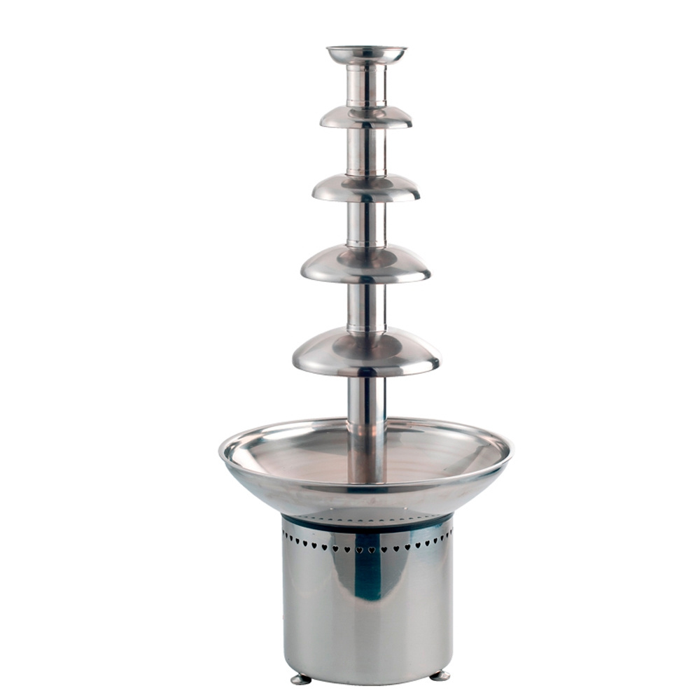 • Schokoladenbrunnen für den professionellen Einsatz. Dieses Modell wird in Italien aus rostfreiem Stahl hergestellt und hat abnehmbare Teile, die leicht zu reinigen sind. Die Temperatur wird durch einen analogen Thermostat auf die gewünschte Temperatur zwischen 30°C und 80°C eingestellt. Der Schokoladenbrunnen fasst 3,5 - 8 Liter Schokolade mit einem feinen Fluss. Er hat die Schutzart IP20 und wiegt 10 kg. Regulärer 1-Phasen-Euro-Stecker.