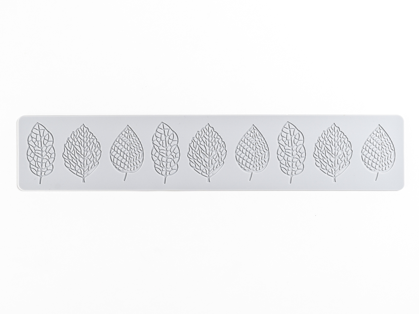 Macht neun Blätter von drei verschiedenen Arten von beliebten Bäumen. Die Form misst 39 x 8 cm.