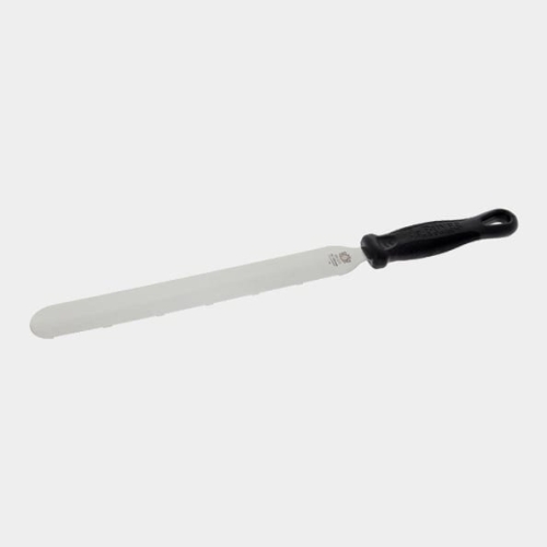 Großzahniges Spachtelmesser im Kohlefaserdesign aus der Serie FKOfficium von de Buyer. Robuste und solide Qualität sowohl beim rostfreien Stahl X20CR13 als auch beim ergonomischen Griff. Verwenden Sie es z.B. zum Spalten von Tortenböden oder zum Verteilen der Füllung auf Ihrem Gebäck. Abmessungen: 25 cm lange Klinge / 39,5 cm lang / 3,5 cm breit 35 cm lange Klinge / 50 cm lang / 3,5 cm breit