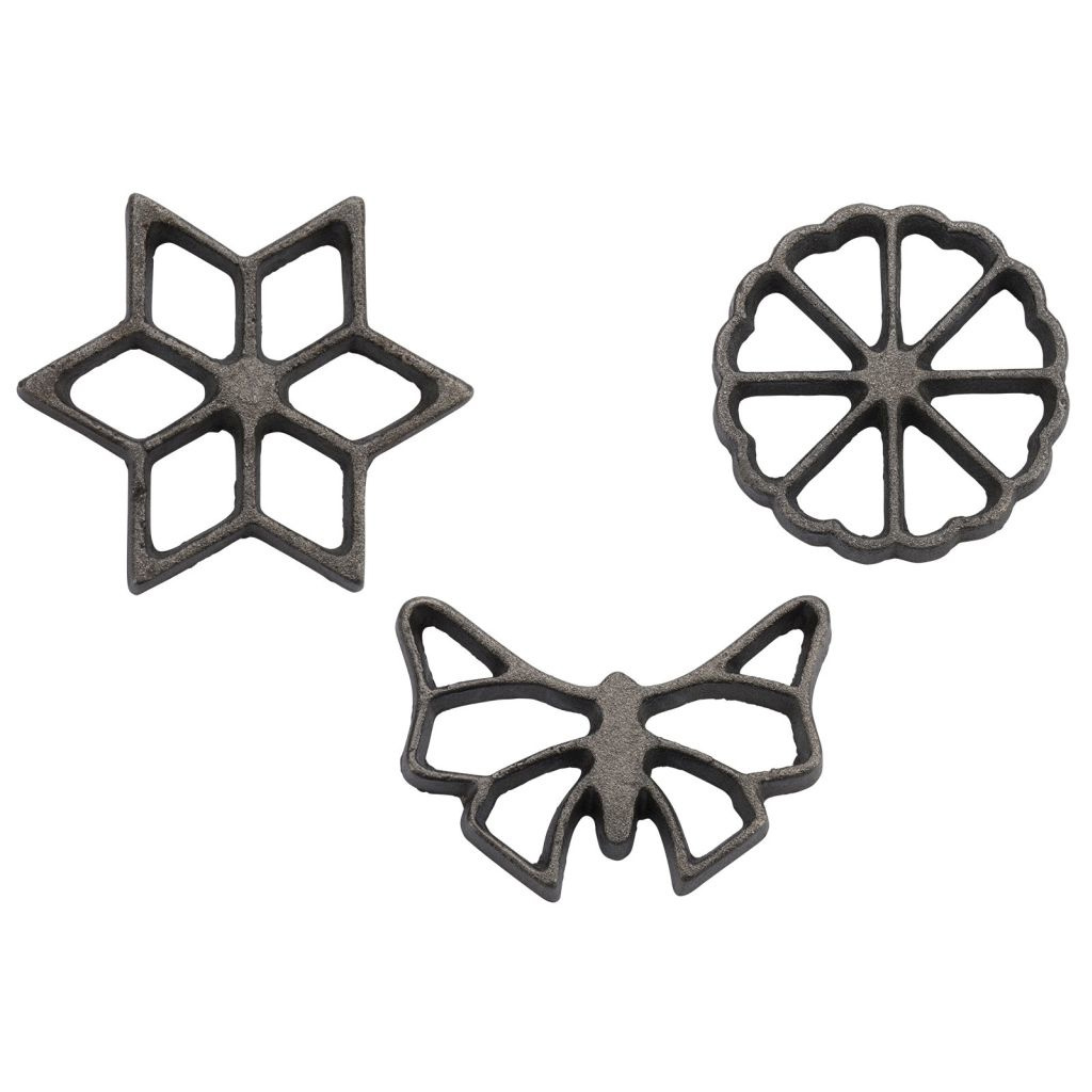 Für einzigartig geformte Waffeln: Beeindrucken Sie Ihre Gäste zur Abwechslung mit selbstgemachten Rosettenwaffeln. Mit den Waffelformen, die mit einem Rezeptheft geliefert werden, wird das Ganze zum Kinderspiel. Mit den schön geformten Waffeln in Herz-, Schmetterlings- oder Sternform beeindrucken Sie sicher jeden, ob jung oder alt. Sie werden mit Sicherheit alle Blicke auf sich ziehen! Anwendung: Einfach Öl in einem Topf erhitzen, die gewünschte Waffelform am Griff befestigen, kurz im Speiseöl erhitzen, dann die Form erst in den Teig und dann schnell ins Öl tauchen und zuletzt warten, bis die Waffel goldbraun wird, dann löst sie sich von selbst aus der Form.