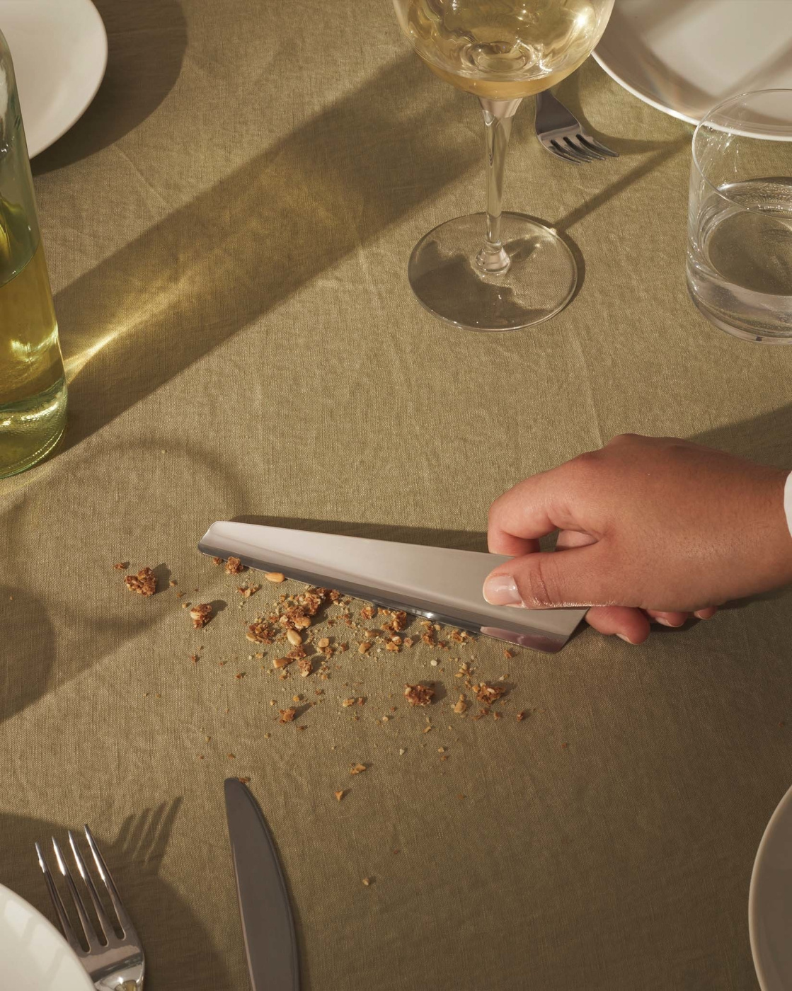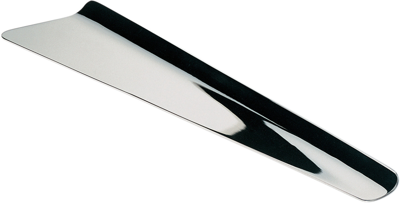 • Der Ala Crumb Collector von Alessi ist ein kompakter Krümelsammler, der dabei hilft, Arbeitsflächen und Tische während des Kochens, Backens und Eindeckens von Krümeln freizuhalten, vor allem aber zwischen Primi und Secondi. Seine sorgfältig ausbalancierte Form ermöglicht eine einfache und effiziente Handhabung mit einer Hand, sodass Krümel und trockene Rückstände schnell aufgenommen werden können, ohne große Bürsten oder Kehrschaufeln zu verwenden. Die schmale Öffnung und der stabile Stand erleichtern das gezielte Aufnehmen der Krümel und sorgen dafür, dass sie ohne Verschütten gesammelt werden. Gefertigt aus Edelstahl mit einem eleganten, zugleich funktionalen Design, liegt er robust in der Hand und lässt sich nach Gebrauch leicht reinigen. Der Crumb Collector ist für Küchen gedacht, in denen praktische Werkzeuge geschätzt werden, die den Arbeitsablauf effizienter gestalten, sei es im Alltag oder bei umfangreicherem Kochen und Backen.