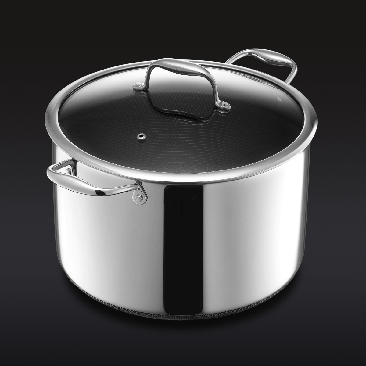 Die Hexclad Hybrid 9,5 L Kasserolle mit Deckel ist eine robuste, vielseitige Pfanne, die der Hektik des Alltags ebenso gewachsen ist wie dem Gourmetprojekt für das Wochenendessen. Ein wahrer treuer Arbeiter in der Küche - bereit, wenn Sie es sind.