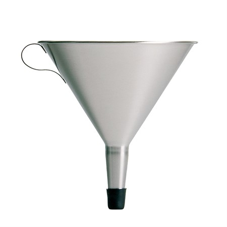 Trichter mit eingebautem Sieb aus rostfreiem Stahl.