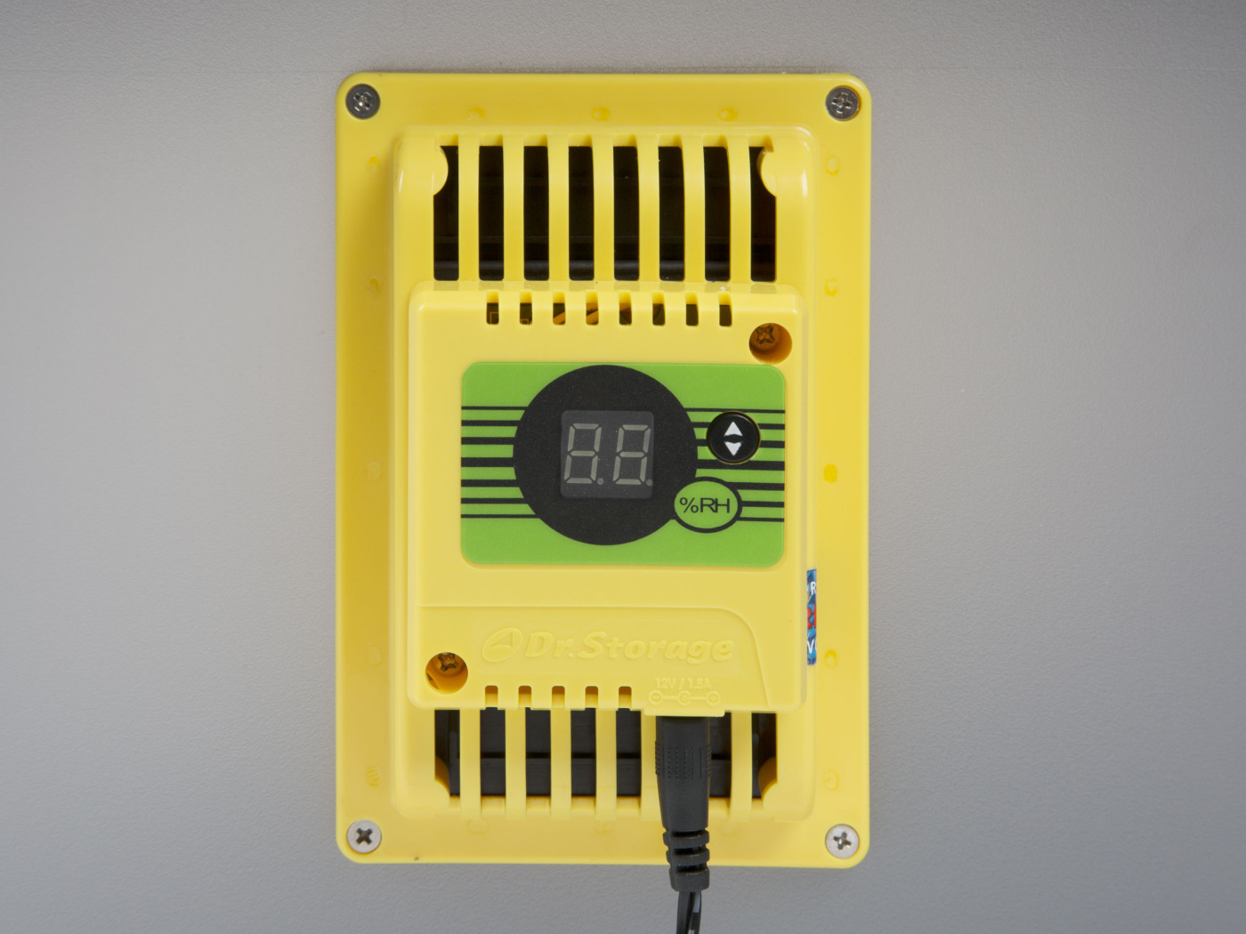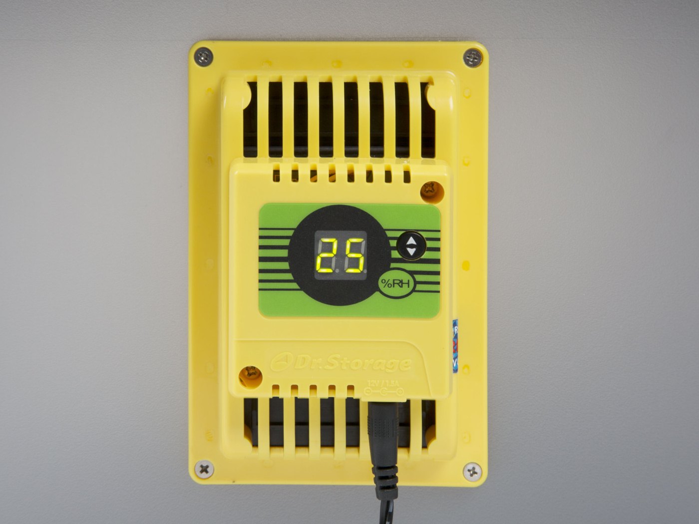 Die stapelbare Aufbewahrungsbox garantiert, dass der Inhalt vollständig trocken bleibt. Ohne Silikagel oder Trockenbälle können Sie einfach das Kabel einstecken und den Ventilator die Arbeit machen lassen. Die Box hat einen integrierten elektrischen Luftentfeuchter in einer Seite und sorgt für trockene Bedingungen unabhängig von der Umgebungsfeuchtigkeit. Die Box läuft nur mit 12V (hat aber einen EU-Stecker).
