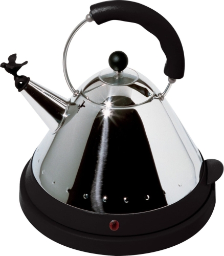 Wasserkocher, Stainless, Stahl/schwarz - Alessi - ist ein kabelloser Wasserkocher aus hochglänzendem Edelstahl. Er pfeift, wenn das Wasser kocht.