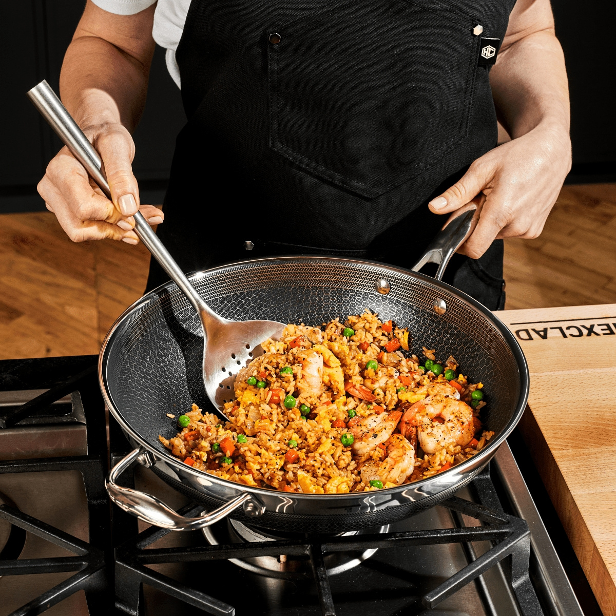 Der Hexclad Wok 30 cm ist für alle, die eine robuste, flexible und vielseitige Wokpfanne suchen - bereit für den alltäglichen Wok, asiatische Pfannengerichte oder kreative Küchenabenteuer mit Geschmack, Hitze und Präzision.